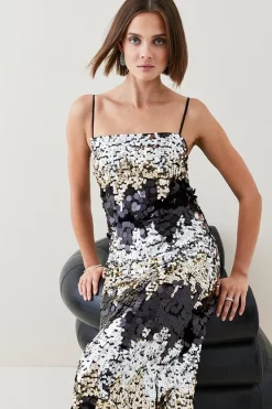 Wholesale ๐ Karen Millen Disc Sequin Strappy Woven Midi ๐ Dress – multi ๐