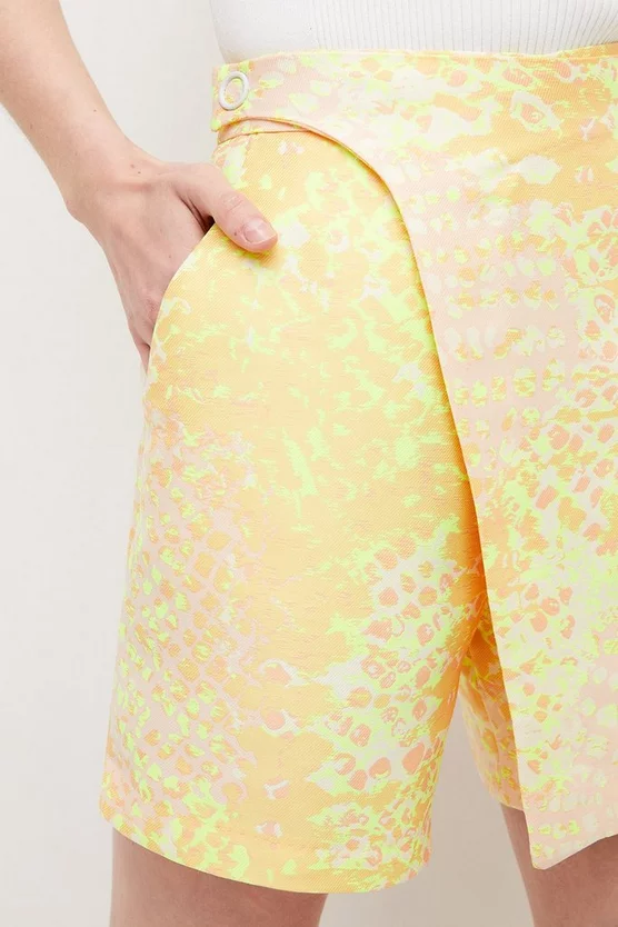 Functional form meets the flirty essence of the summertime for this punchy patterned piece. Shaped to create a straight leg design, this skort has tailored shorts as the base layer, which secure with a rear zip. The skirt overlay curves across the front with masterful ease – securing at the high-rise waist with a round press stud. Pair with a fresh white vest, raffia espadrilles and plenty of gold jewellery.