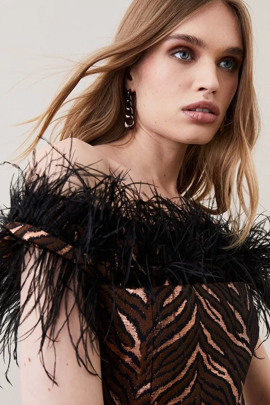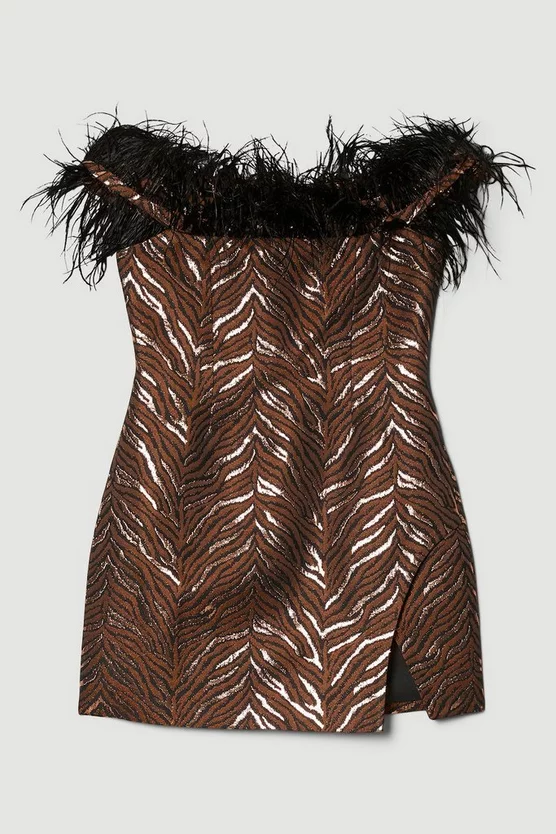 Buy 🤩 Karen Millen Animal Jacquard Feather Bardot Mini 👗 Dress 🌟