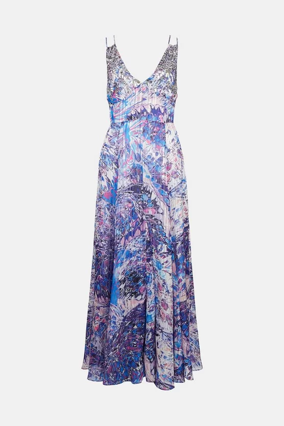 Intricately embellished with hundreds of beads, this vividly printed maxi dress brings artisanal elegance to special occasions. Its slender double straps, V-neck and swishy skirt combine to stunning effect for a look bound to make a bold impression.