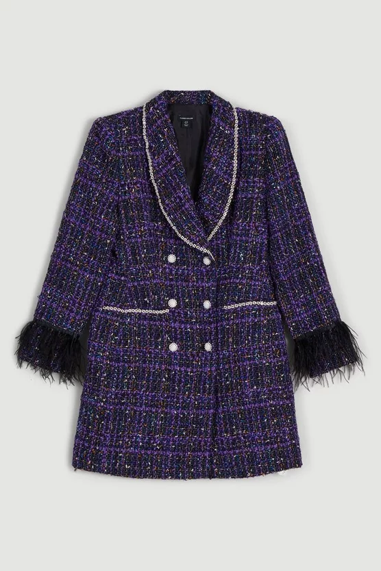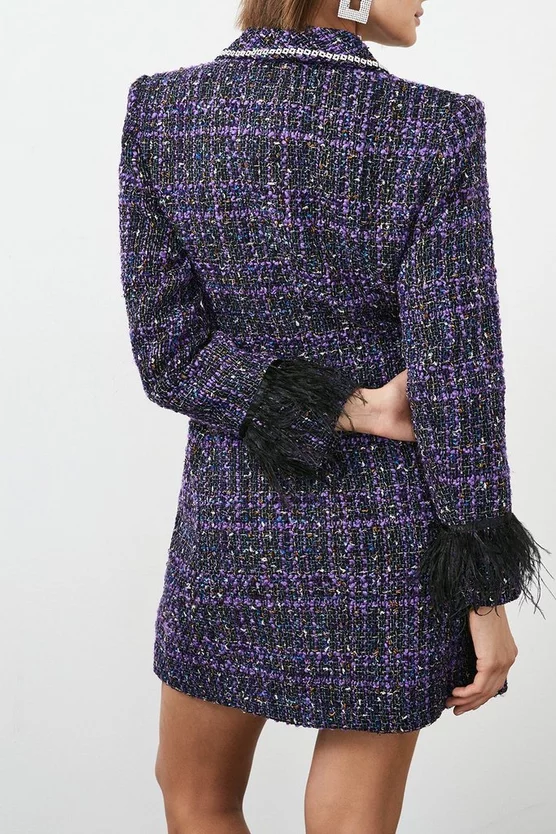 Nodding to traditional tailoring with new-found modernity, meet your new power piece. Characterised by the enlivened addition of a crystal trim, this blazer dress scintillates with contemporary direction.