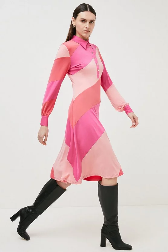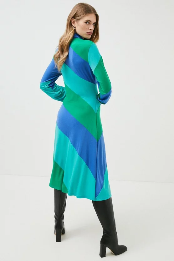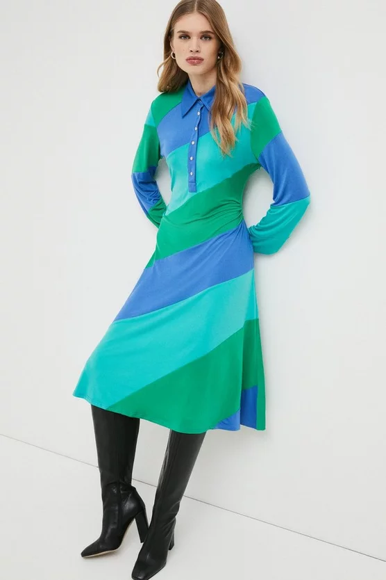 Brighten up grey days in this bold colour-block dress. Detailed with wide stripes and a polo-style collar, it pairs perfectly with black knee-high boots and simple gold jewellery.