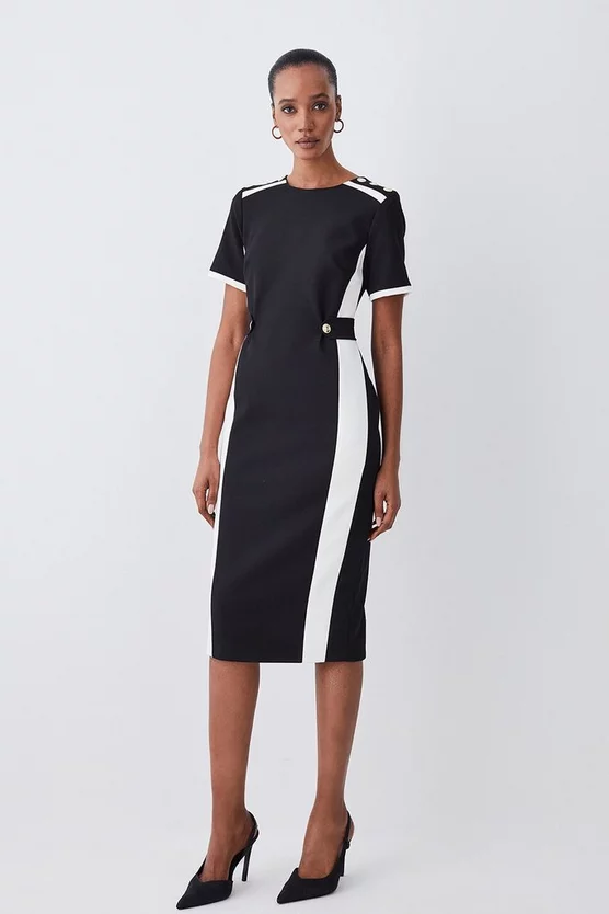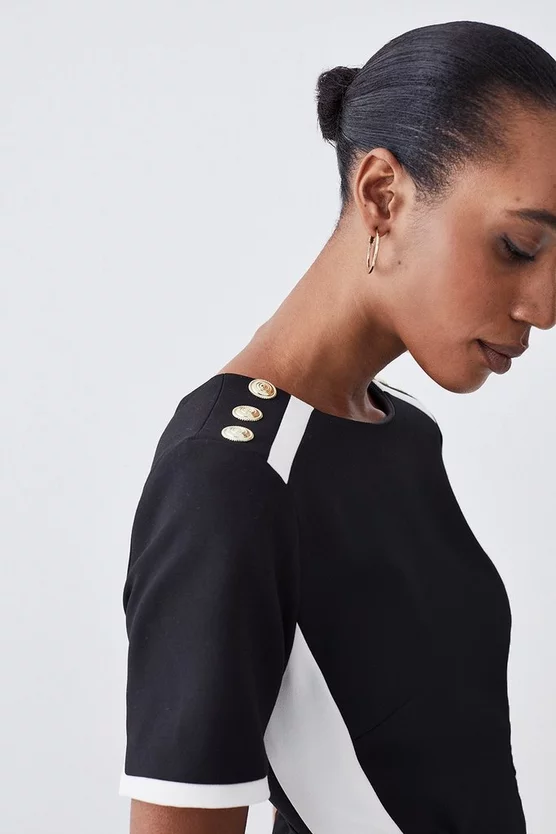 Main & Contrast: 33% Polyester, 31% Viscose, 30% Recycled Polyester, 6% Elastane. Lining: 100% Polyester. Dry clean only. Model wears UK 8/US 4. Model height: 5″9. Length measurement: 108cm.
