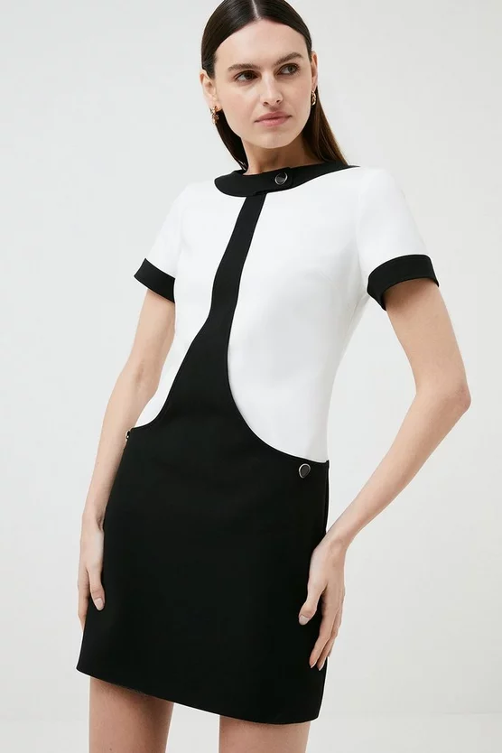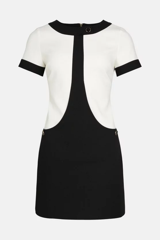 Bring an ultra-modern feel to any occasion in this panelled A-line dress. Showing off sweeping color-block panels and glossy buttons, this 1960s-inspired design brings graphic glamour to after-work drinks or date night. Finished with an exposed back zip closure.