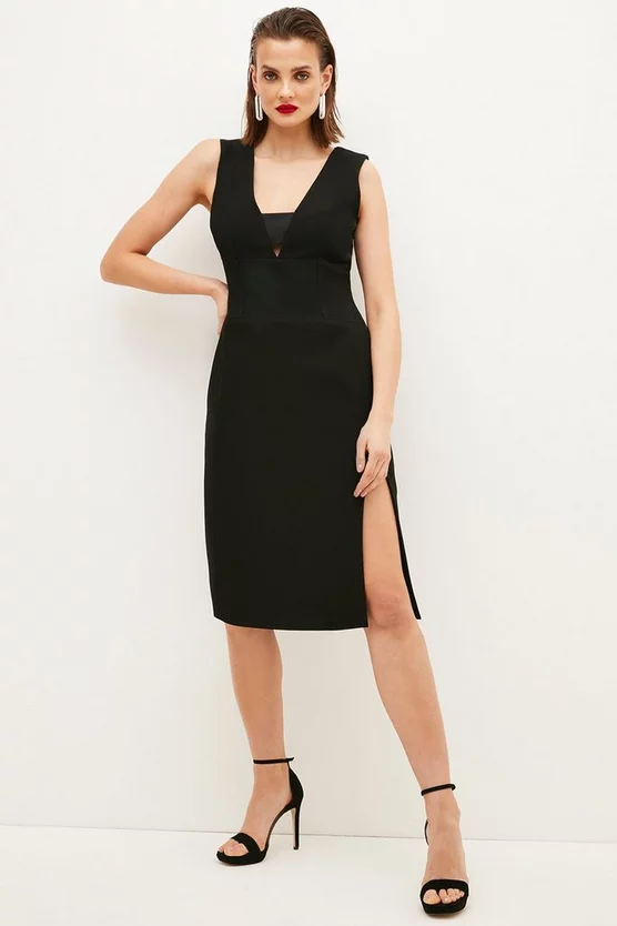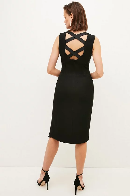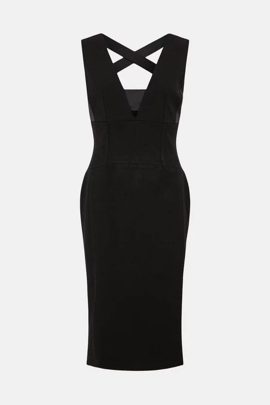 A true wardrobe icon, this beautifully cut pencil dress comes crafted from our signature Compact Stretch fabric fitted with a sultry satin panel framing the front. Worthy of your very own supermodel moment, its flattering A-line pencil skirt and clean-lined silhouette lengthens legs to polished perfection.