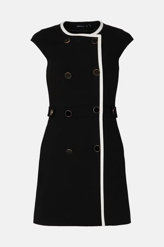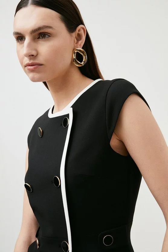 Enjoy an on-trend 1960s moment in this retro monochrome dress. Defined by its neat rows of contrasting buttons and a flattering A-line shape, this sleek design is perfect for smart-casual spring occasions and features handy pockets for a utilitarian twist.
