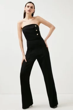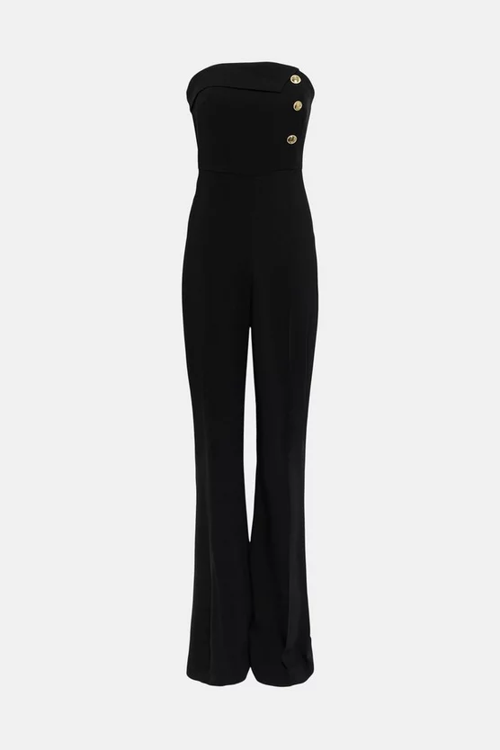 Perfect for parties, our bandeau jumpsuit comes defined by three glossy buttons and a front fold-over detail. Wide legs and a nipped-in waistline highlight any figure to beautifully flattering effect.
