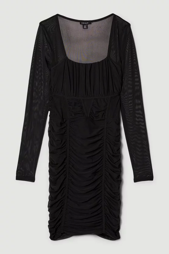 Exude confidence in this sultry black mini dress. Mesh sleeves and panel detailing give this dress a stand-out edge, while a square neckline helps to create an alluring silhouette. Pair with pointed heels for the perfect finish to this striking ensemble.