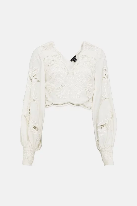 Coupon ๐Ÿ‘ Karen Millen Cutwork Beaded Drama Sleeve Woven Top – white ๐Ÿฅฐ