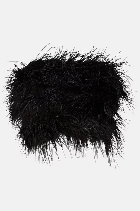 Add a high-fashion finish to your look with this lavish bandeau top. Plumes of lavish feathers create a vivacious illusion, making it perfect for party season. Style this piece with sleek black trousers or the co-ordinating skirt.