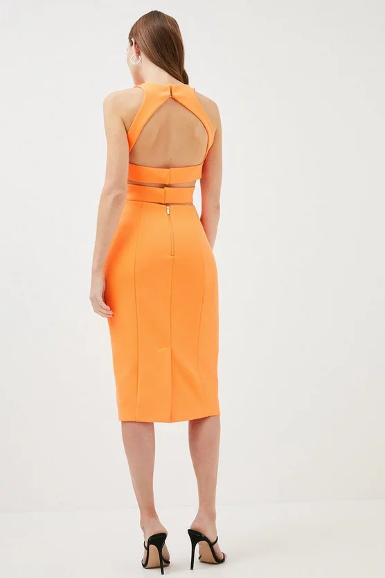 Crossover straps and flirty cut-outs make this a feminine choice for special occasions. Cut to a body-skimming silhouette complete with an open back, this demure pencil dress fits beautifully and can be instantly elevated with strappy heels and bold jewellery.