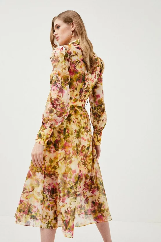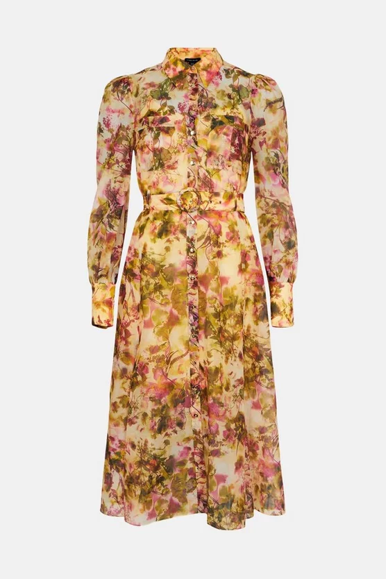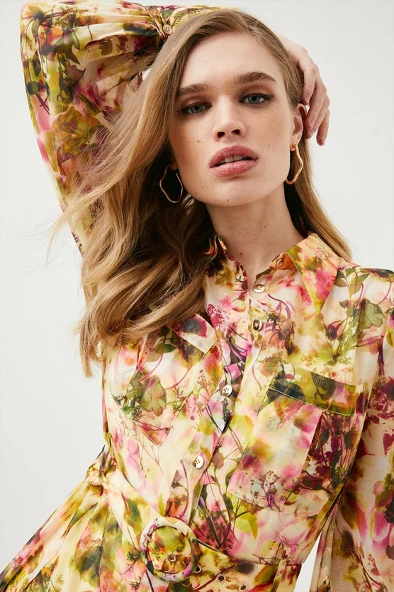 Swap plain midi dresses for something a little more spring-appropriate. Our opulently printed organdie dress combines puffed sleeves with a neatly buttoned front and removable belt to cinch in your silhouette. A pointed collar and two patch pockets add a modern utilitarian spin to a style that’s sure to make a statement at spring parties and balmy-day weddings.