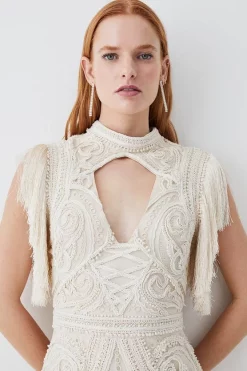 Flash Sale 🤩 Karen Millen Compact Stretch Belted Forever Belted Pencil Midi 👗 Dress – ivory 💯