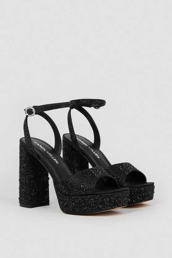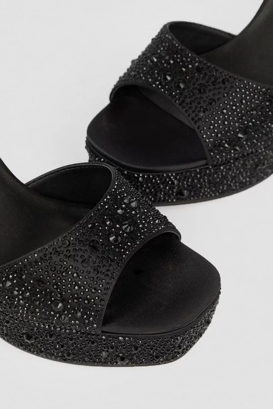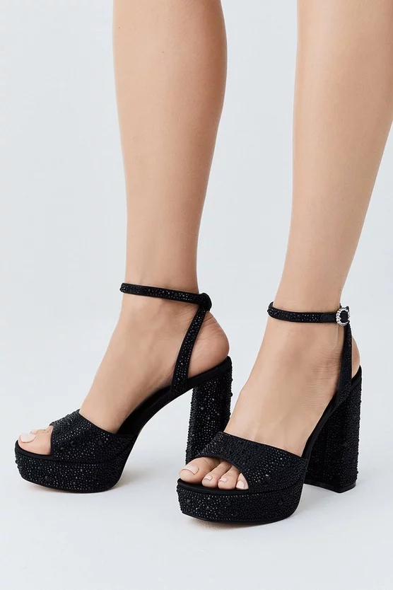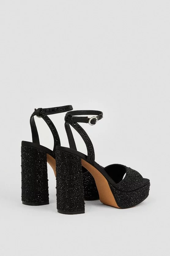 Embrace high-octane glamour in these stylish block heels. Diamante details give a unique droplet effect, while a crystal-clad clasp adds further glamour.