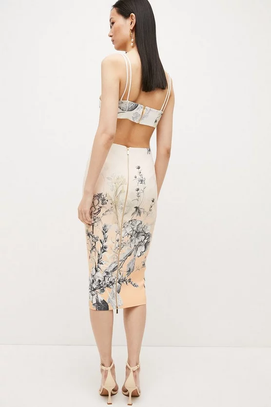 This design is from Karen Millen’s collaboration with botanical artist Rui Jiang. Working closely together to create an exclusive one-of-a-kind collection, Rui’s prints have been transposed and artfully placed onto exquisitely designed clothing.