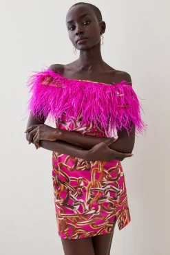 Main: 71% Acetate, 26% Polyamide, 3% Elastane. Trim: 100% Ostrich Feather. Lining: 98% Polyester, 2% Elastane. Professional Dry Clean Only. Model wears UK size 8/ US size 4. Model height Approx: 5″9. Length Approx: 67cm (top edge to hem)