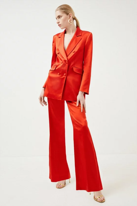Bringing a dash of 90s cool to your wardrobe, these Italian structured satin trousers show off a scene-stealing pop of colour. Detailed with a high-rise waistline, side pockets and softly tailored finish, they make an elegant partner for our matching longline blazer and strappy metallic heels.