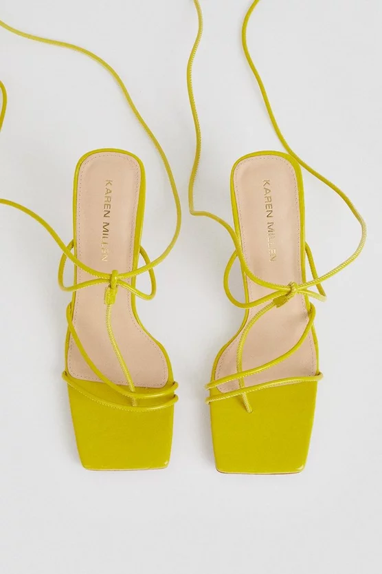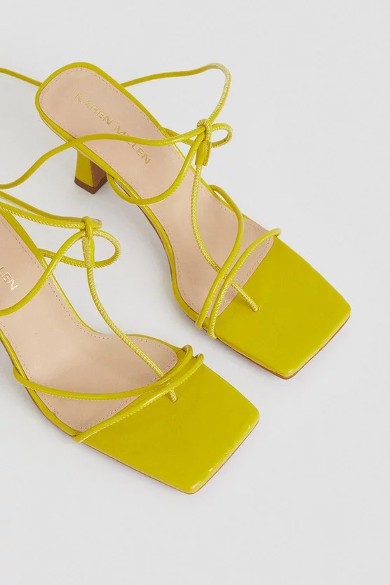 Indulge your eye for trends with the shoe of the season. Blending luxe leather straps that snake alluringly up the ankle with modern square toes and architectural heels, these standout strappy sandals were made to hit the dance floor, all night long.