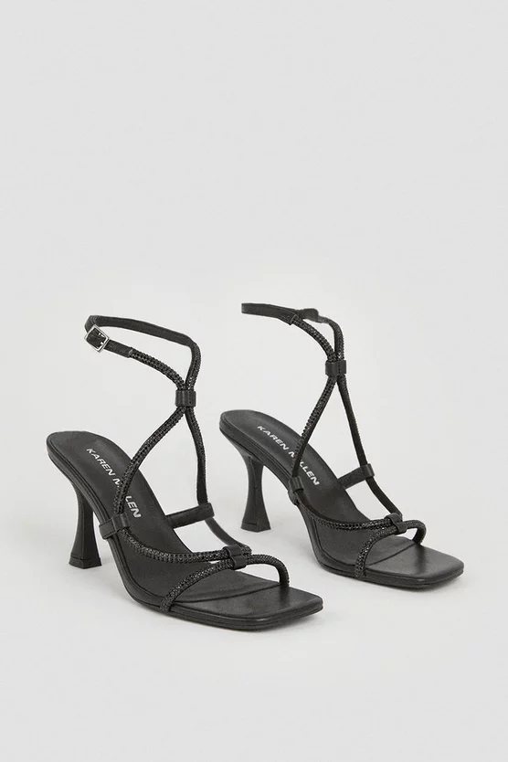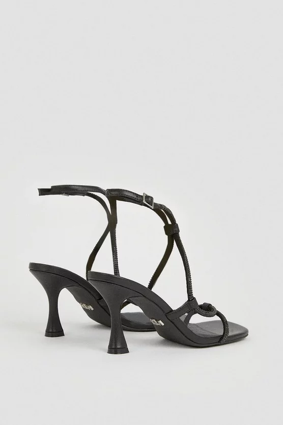 Embellished straps curve up the feet for a beautifully seductive finish on these statement colour-pop sandals. Combining a sense of modern Grecian glamour with open toes and architectural mid-height heels, they make the perfect addition to the season’s floaty floral-print dresses or a sharp trouser suit.