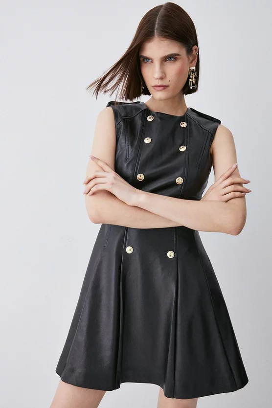 Main: 100% Responsibly Sourced Leather. Lining: 100% Polyester. Wipe Clean. Model wears UK 8/US 4. Model height: 5″9. Length measurement: 86cm.