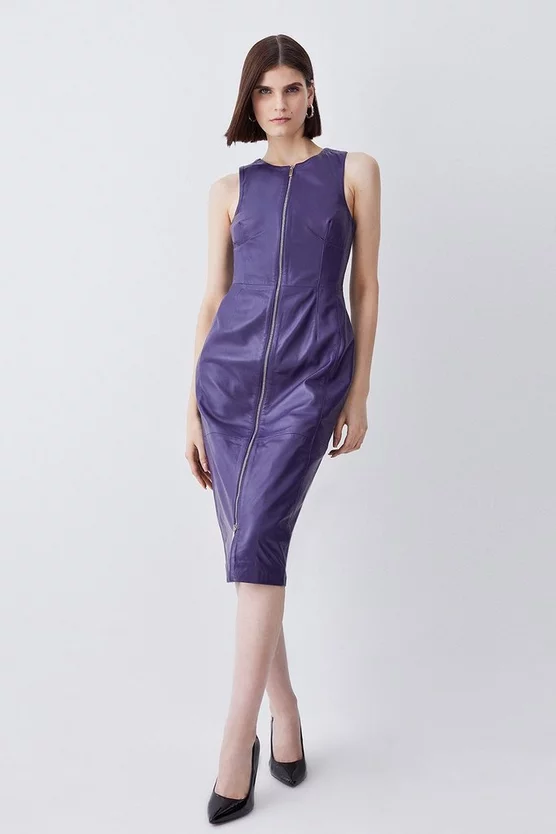 Coupon 🤩 Karen Millen Leather Zip Though Pencil Midi 👗 Dress 😀