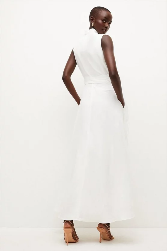 50% Linen, 50% Viscose. Lining: 100% Cotton. Dry clean only. Model wears a UK 8/US 4. Length of a UK 10: approx 144cm.