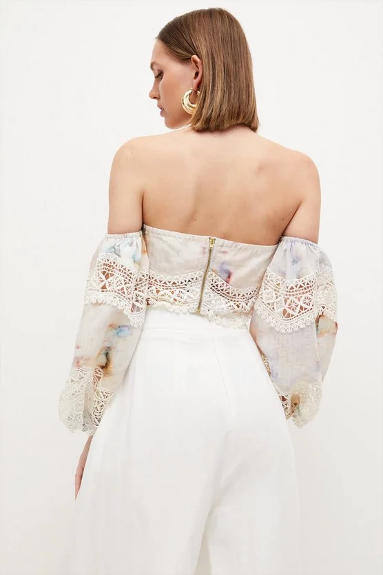 Revisiting Lydia’s love of florals, this top embodies her signature designs with a new-season twist. Offering a touch of allure to your summer dressing, the piece comes with an off-the-shoulder bodice and billowing sleeves. An inspired fabrication of contemporary florals and classic lace means this piece is set to be worn year after year.