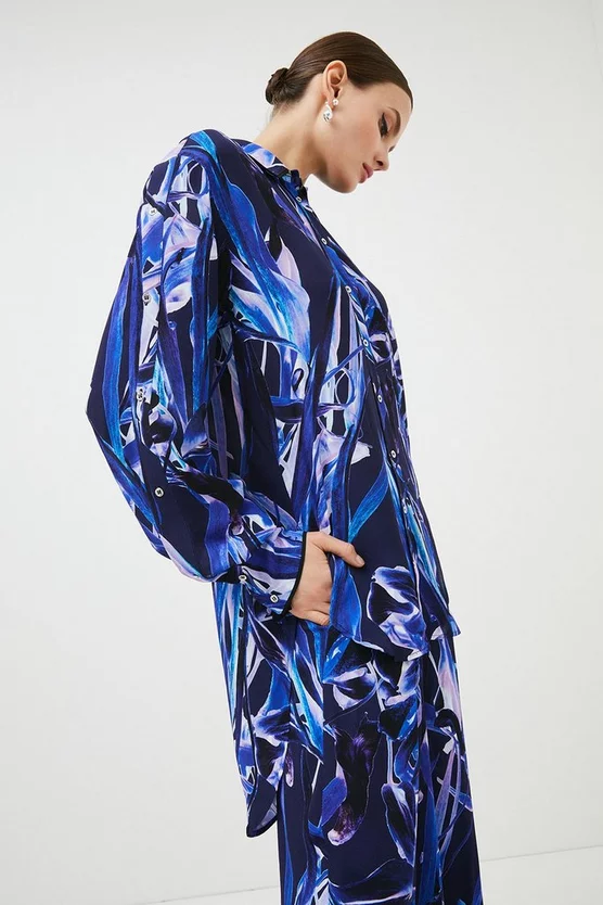 This tunic is part of the Karen Millen x Nicholas Hughes collaboration. The exclusive, limited collection showcases photographer Nicholas hand printed imagery, metamorphosed into exclusive prints synergised by our in-house design team – this one inspired by his Natural Chaos artwork.