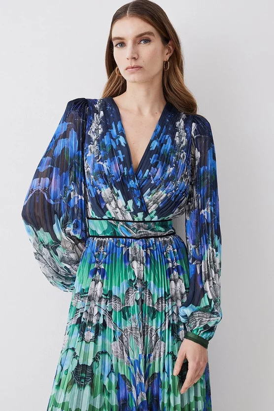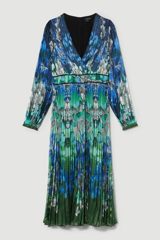 Budget ๐งจ Karen Millen Mirrored Ombre Floral Pleat Drama Woven Mini ๐ Dress – blue ๐ฅ