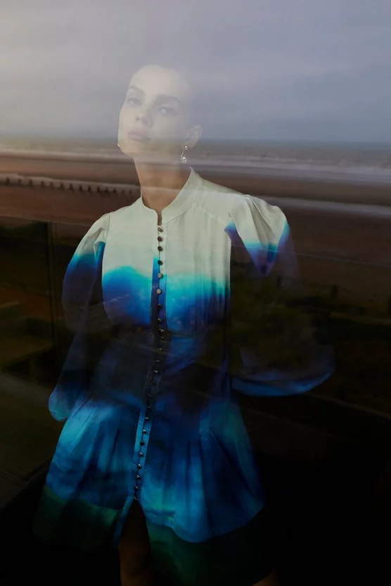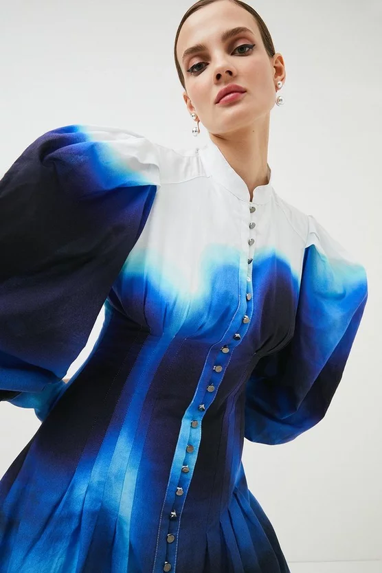 This mini shirt dress is part of the Karen Millen x Nicholas Hughes collaboration. The exclusive, limited collection showcases photographer Nicholas hand printed imagery, metamorphosed into exclusive prints synergised by our in-house design team – this one inspired by his Aspects of Cosmological Indifference artwork.
