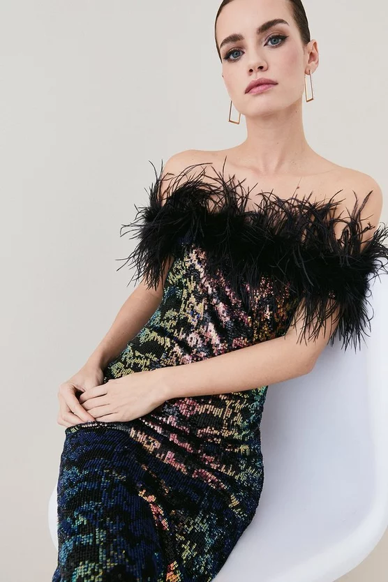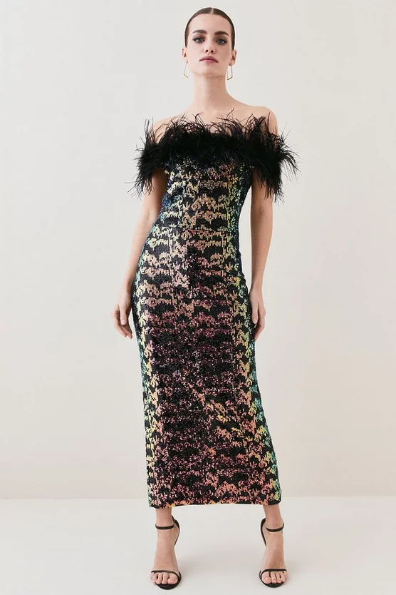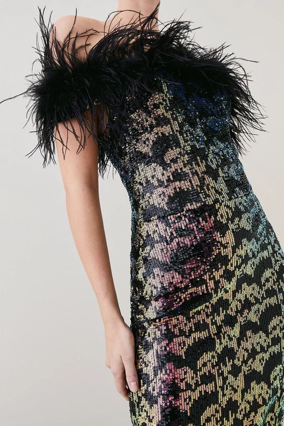 Promo ๐ฅฐ Karen Millen Petite One Shoulder Organza Flower Detail Knit Midi ๐ Dress – black ๐
