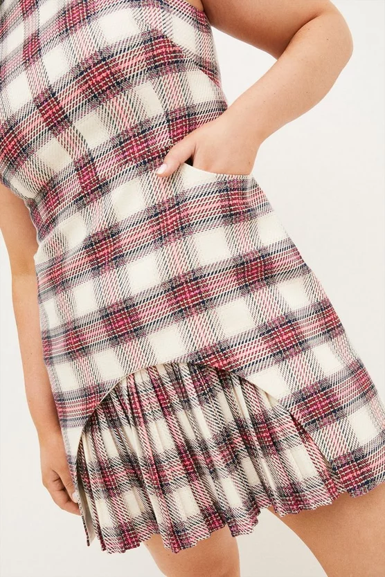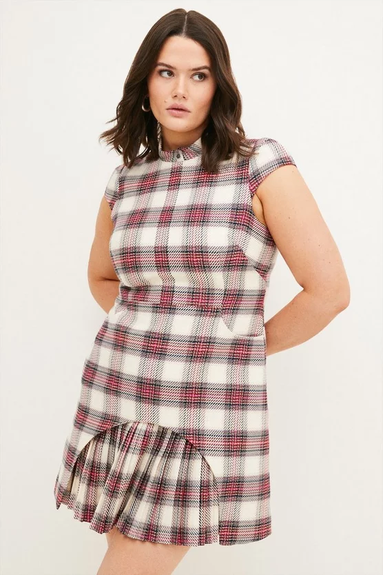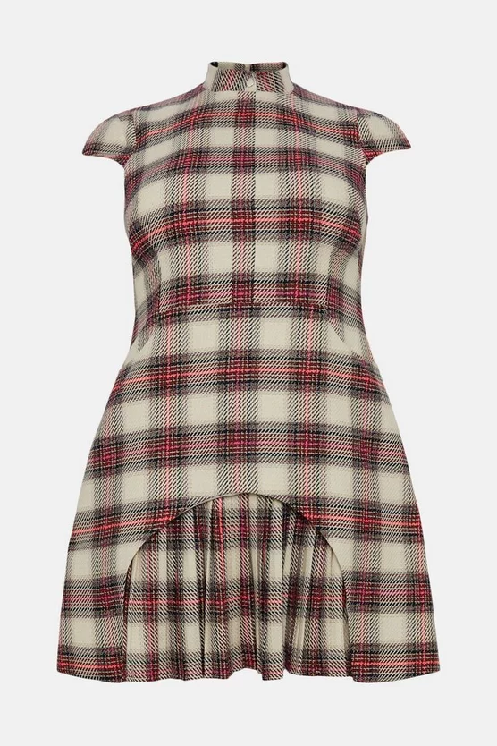 How to wear heritage checks for spring? With panache and a sweep of pretty pleats. Featuring a high neckline, cap sleeves and a uniquely detailed hem, this polished mini dress makes light work of day-to-night styling.