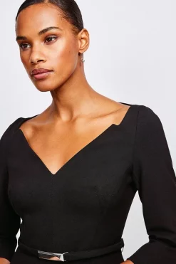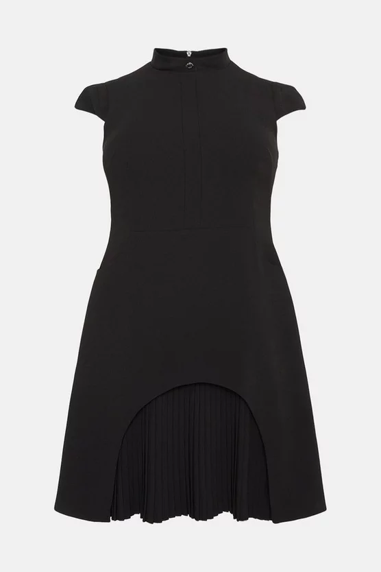 Say hello to your new favourite dress.. An unexpected take on the classic A-line silhouette, this piece features an eye-catching cut-out panelling with a pleated underneath layer. Plus, it comes complete with a flattering high neck (with glossy popper detailing) and capped sleeves.