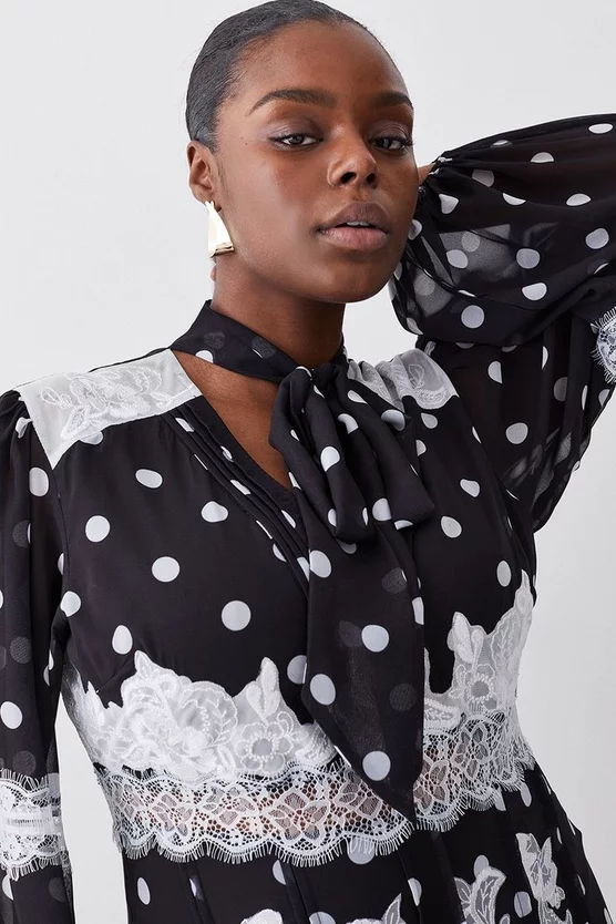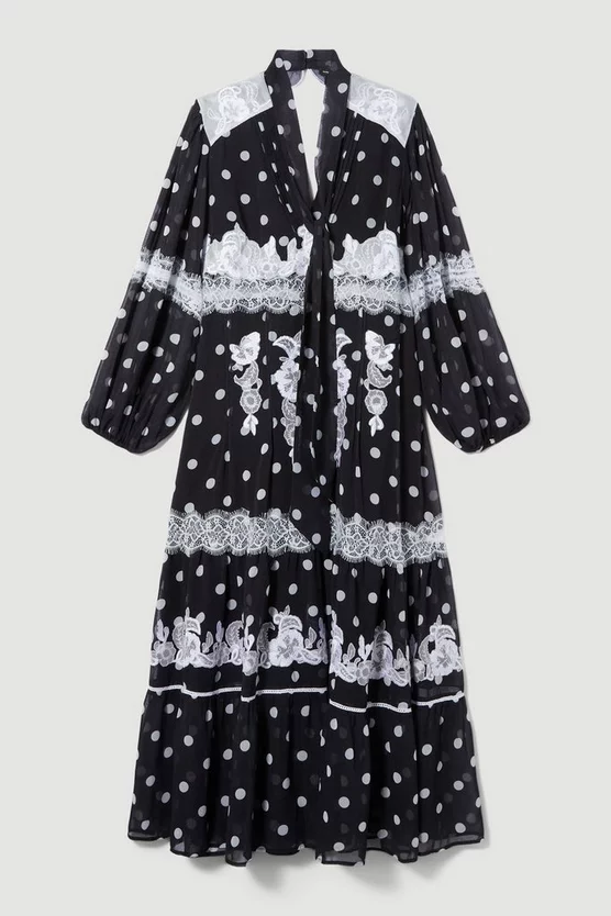 Hot Sale โค๏ธ Karen Millen Plus Size Polka Dot Mix Lace & Embroidery Maxi ๐Ÿ‘— Dress – black โŒ›