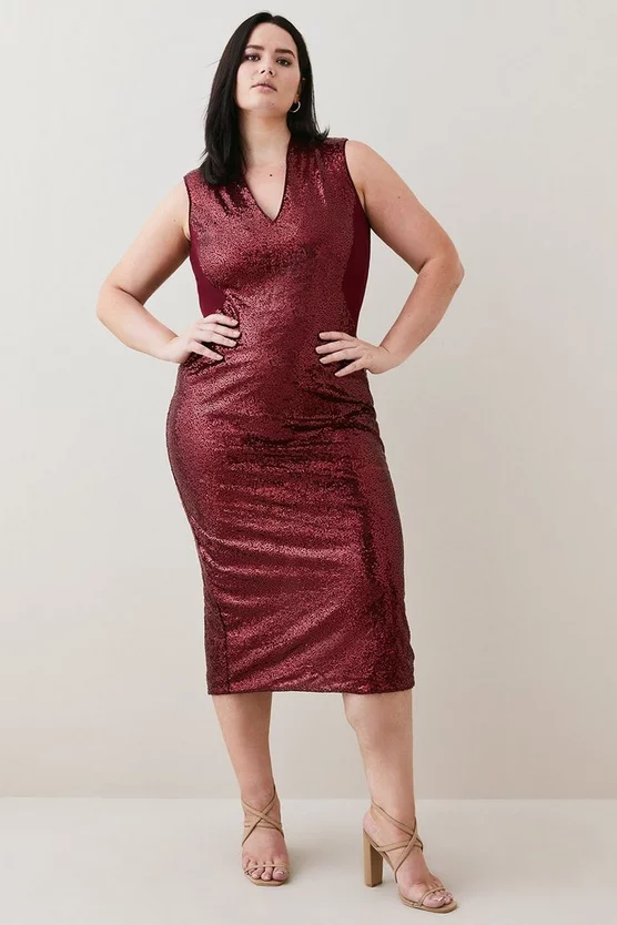 Best Sale โ Karen Millen Plus Size Structured Crepe Cross Detail Midi ๐ Dress – merlot โญ