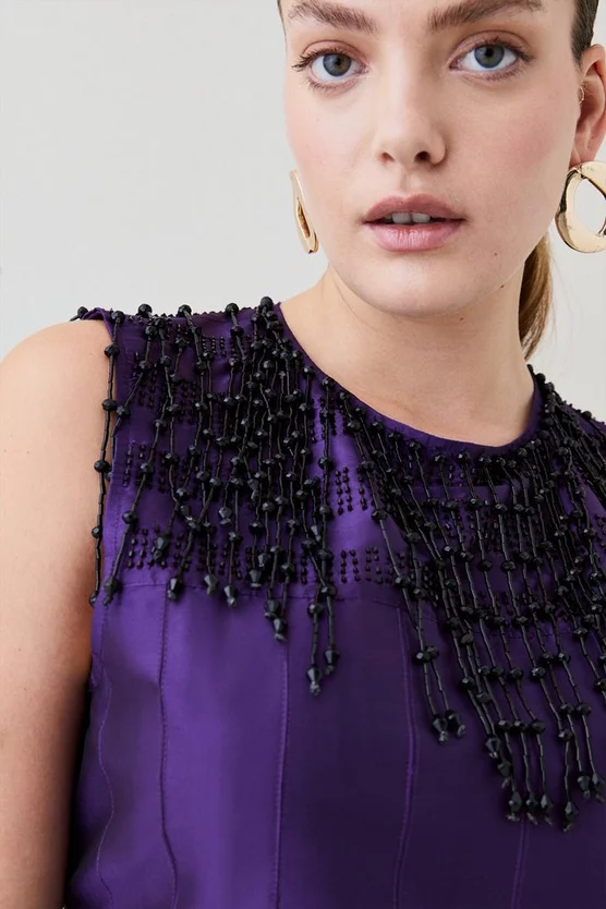 100% polyester. Gentle machine wash at 30 with similar colours. Model Height 5”10 – Model wears a UK 8/US Size 6.