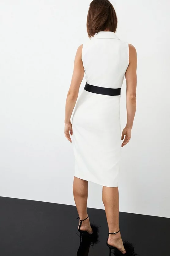 Main & Contrast: 100% Polyester. Lining: 100% Polyester. Dry clean only. Model wears UK 8/US 4. Model height: 5″9. Length measurement: 116cm.