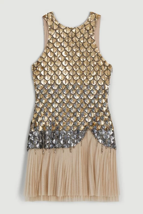 Dip your toe into the sartorial ocean of fashion-first ensembles with this dimensional piece. Boasting scintillating scales throughout, this proportional piece nods to the decadent aesthetic of the roaring twenties with new-found modernity.