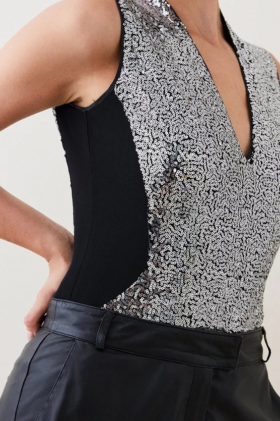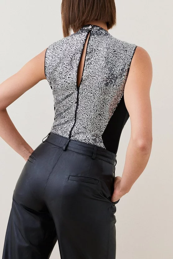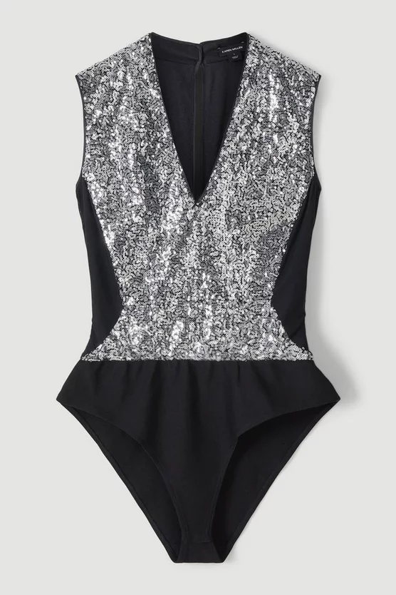 Match the midnight hour in the after-dark majesty of this embellished href=”https://www.karenmillen.com/womens/tops/bodysuits”>bodysuit. Enlivened with scintillating depth, this piece is guided by block panelling for an ultimately modern finish.