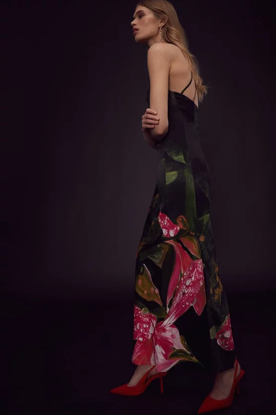This printed slip dress is part of Karen Millen x Kate Bickmore: The Second Collection. Reimagining Kateβs original prints in a fresh, captivating palette, these dramatic new compositions beautifully bring our silhouettes to life, and in turn, your wardrobe too.