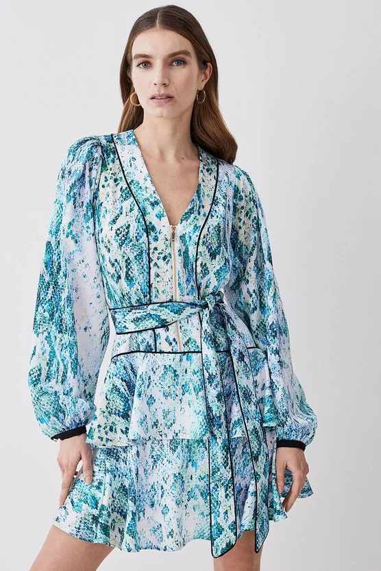 100% polyester. Gentle machine wash at 30 with similar colours. Model Height 5”10 – Model wears a UK 8/US Size 6. Centre back length of a 10: 90cm
