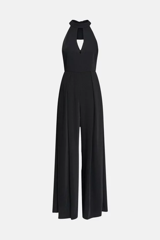 Bringing a dose of 70s flair to evening dressing, this show-stopping jumpsuit is a stellar occasion piece. Cut with a halter neck, the zip is hidden at the back with the tie neck fastening. Embrace the drama of this design with the wide leg trousers, intended to sweep the floor. A timeless modern style, enjoy this design for years to come.