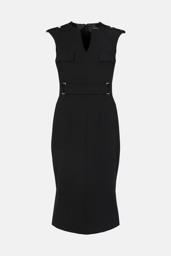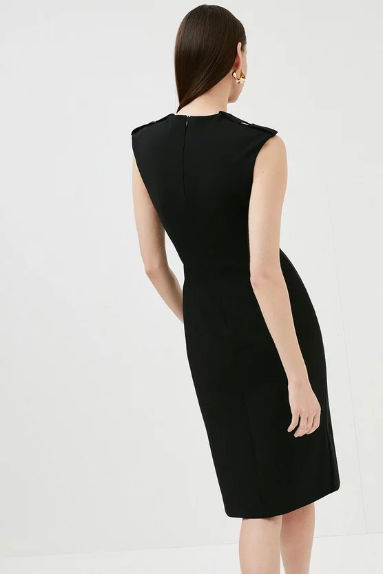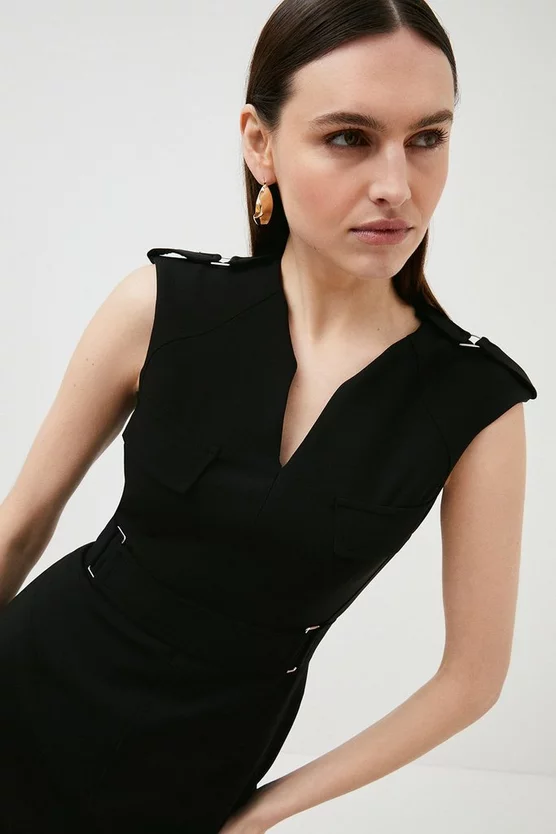 A dress thatβll always make you feel your best. Tailored with carefully placed seams so itβll hug to all the right places, the pencil silhouette is enhanced with military-inspired shoulder epaulettes, front-flap pockets and a decorative D-ring buckle at the waist.