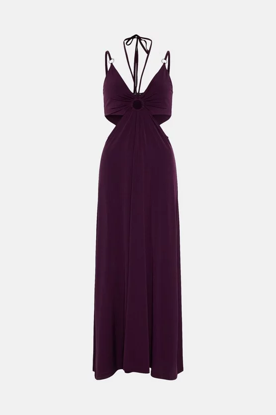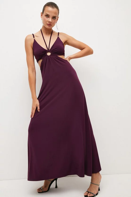 Buy πŸ”₯ Karen Millen Strap Detail Jersey Crepe Maxi πŸ‘— Dress – burgundy βŒ›