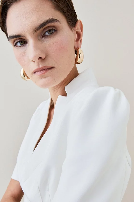 Main: 63% Polyester, 32% Viscose/Rayon, 5% Elastane/Spandex. Lining %100 Polyester. Dry clean only. Model wears UK 8/ US 4. Model Height: 5″9. Leg length measurement: 67cm.