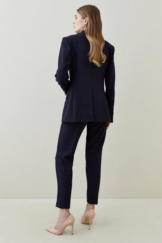 Boasting an array of timeless characteristics, these slim-leg trousers are composed with unfaltering elegance. Crafted from our signature stretch fabric that contours the silhouette with unparalleled four-way stretch, they’re tailored with a waist-defining mid-rise. Led by the sharp creases that add dimension to a streamlined shape, they land at cropped hems – calling for a statement stiletto.
