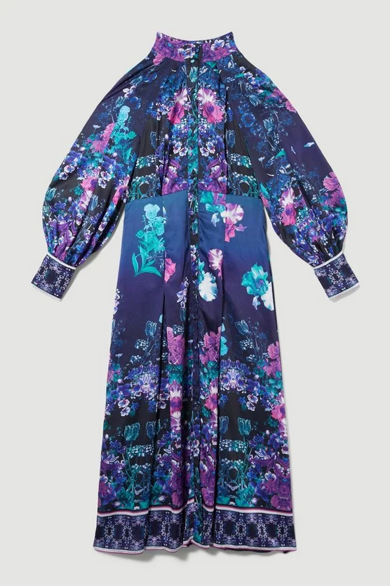 Budget ๐งจ Karen Millen Mirrored Ombre Floral Pleat Drama Woven Mini ๐ Dress – blue ๐ฅ