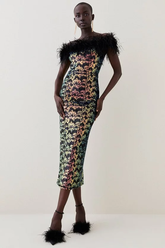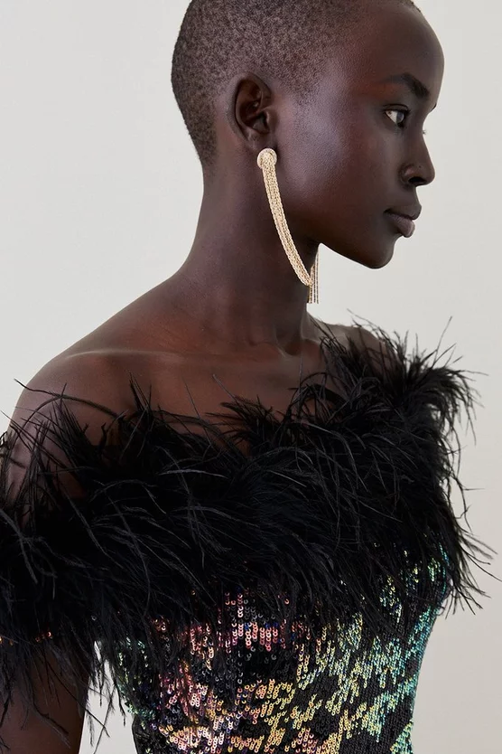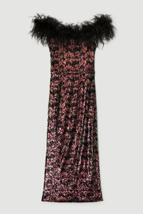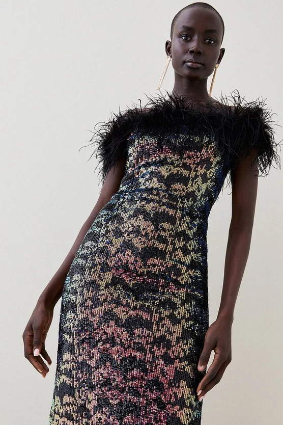 Best deal 🌟 Karen Millen Lydia Millen Metallic Feather Ruffle Woven Maxi 👗 Dress – metallic silver 🌟