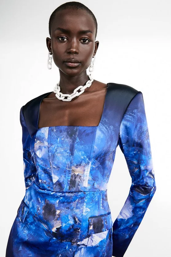 Presenting the Karen Millen x Weston collaboration, a decadent collection of occasion pieces inspired by the natural world. This exclusive collection features Professor Richard Weston’s magnified images of minerals, rocks and plants, moulded into prints – a considered amalgamation of nature and beauty.