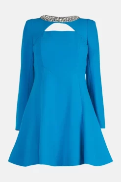 Best Pirce ⭐ Karen Millen Petite Sequin Velvet Mesh Detail Feather Cuff Jersey Mini – black 🤩